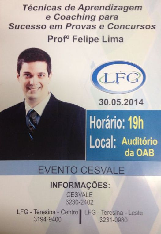 Palestra gratuita para os alunos da Faculdade Cesvale no auditório da OAB com o Professor Felipe Lima, dia 30/05 (sexta-feira) às 19hs, abordando o tema Técnicas de Aprendizagem. O Palestrante é um dos melhores do Brasil em relação ao tema proposto. A IES convida alunos e professores para este importante evento, uma vez que uma […]