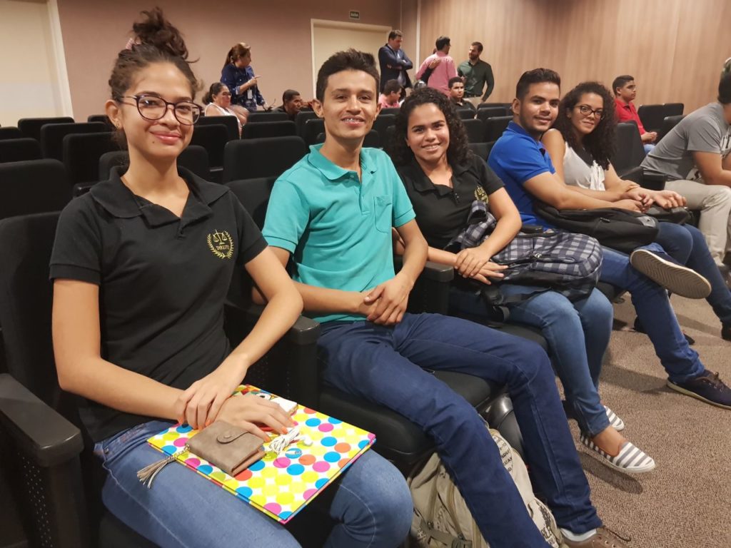 A sessão da 2ª Vara do Tribunal do Júri, realizada nesta quinta-feira (15/02), foi assistida pelos alunos do 1° ao 7° período do curso de Direito do CESVALE. A iniciativa permitirá que os estudantes tenham noções sobre os procedimentos de formação e condução de um júri popular que, neste caso, é presidido pela juíza Maria Zilnar Coutinho Leal.