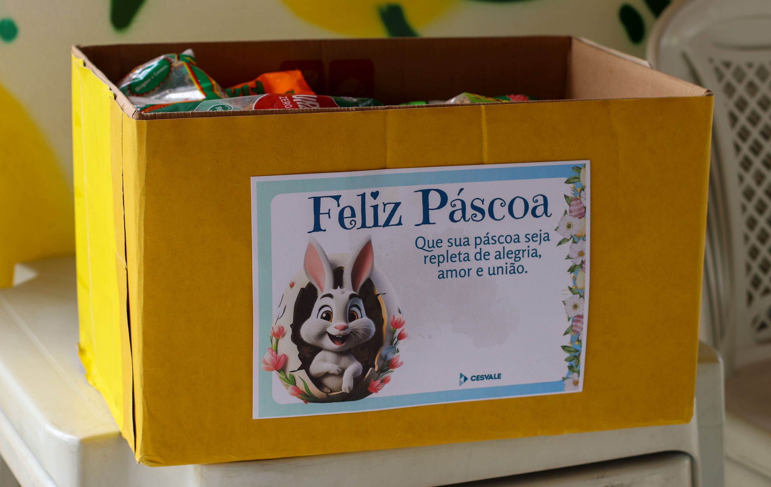 As cestas de Páscoa entregues aos jovens foram montadas a partir de doações de alunos da faculdade, que contribuíram através de uma campanha de arrecadação realizada durante o período de 11/03 a 12/04, por meio do Núcleo de Atendimento CESVALE (NAC).